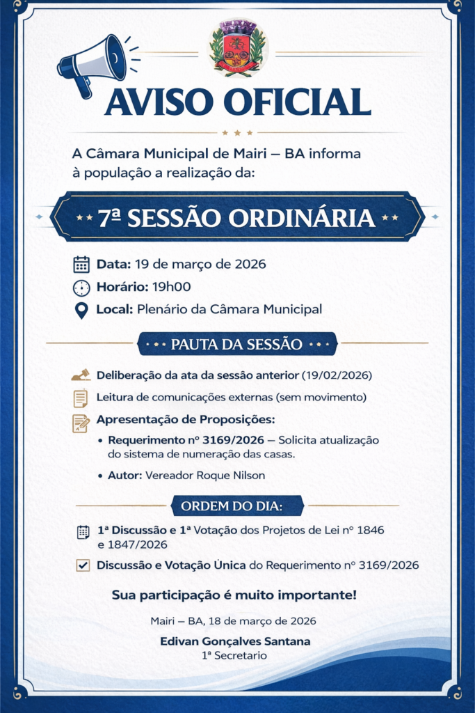 Sessão da Câmara de Vereadores de Mairi-BA – 04/07/2024