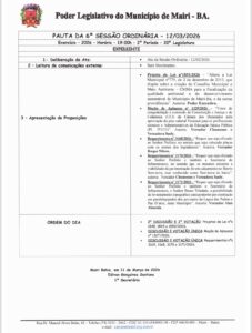 Pauta Sessão Ordinária 12/03/2026