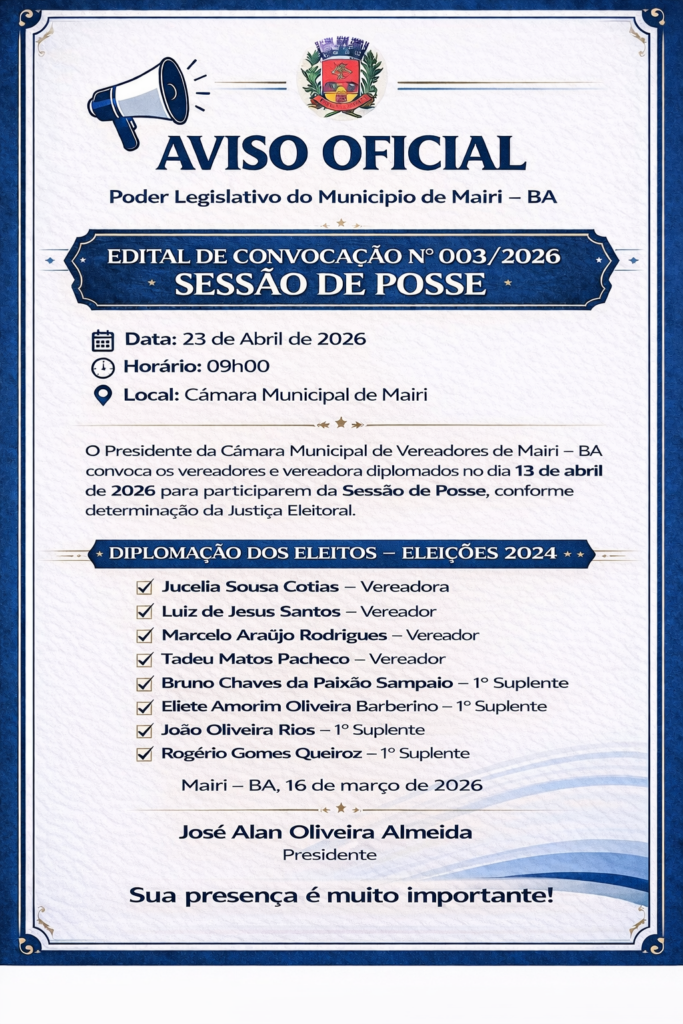 Convite: Sessão de abertura dos trabalhos legislativos de 2026